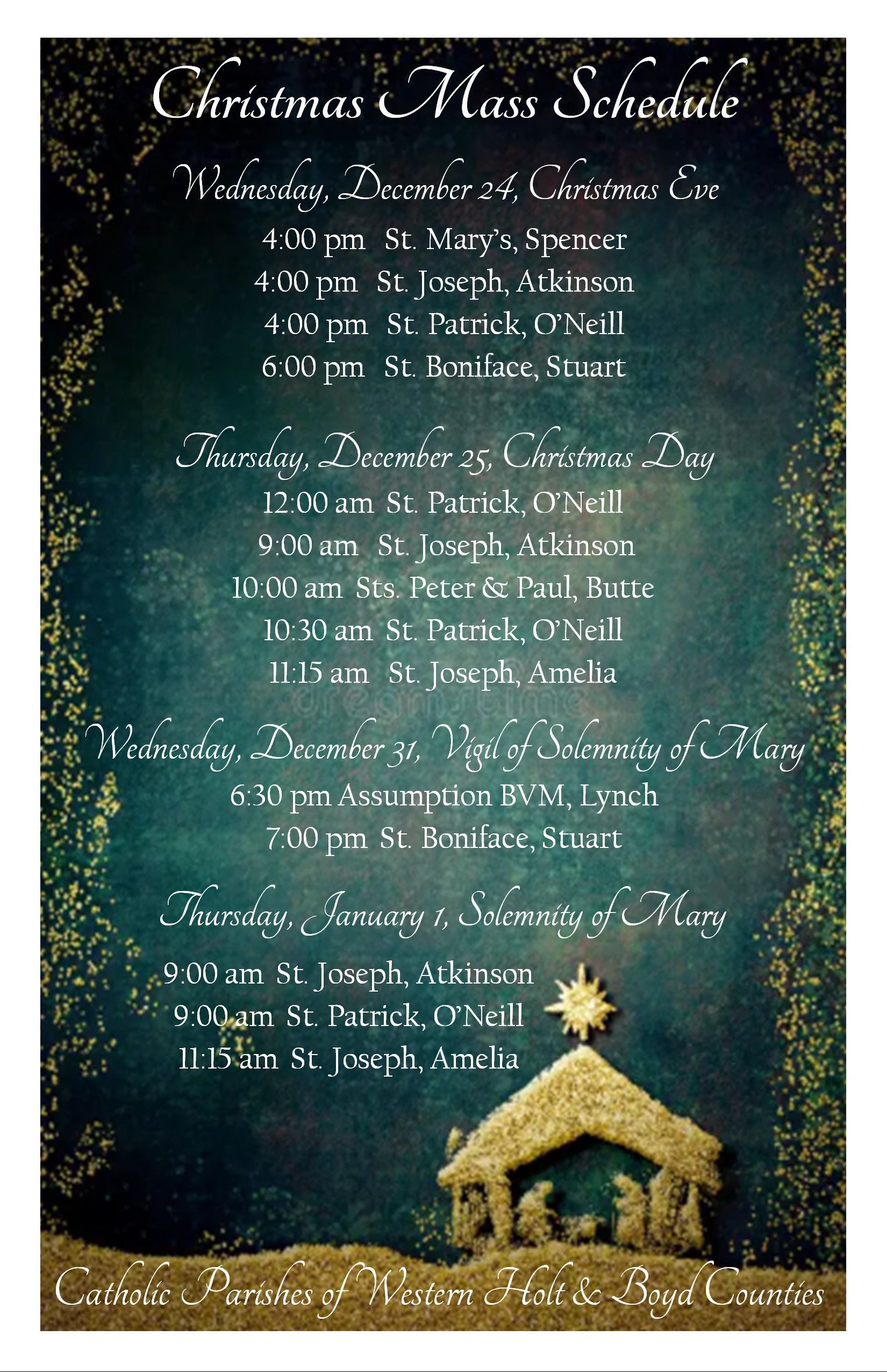CHristmas & solemnity of mary mass schedules 2025