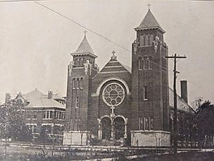On May 4, 1900, a parish meeting was secretly called to honor Father Cassidy. The parishioners found out that Father was going to Europe. A committee called upon Father and presented him with a well-filled purse containing well over four-hundred dollars, and the following address: "Beloved Pastor: Having learned of your proposed trip to Europe, we take this opportunity of paying you our respects before your departure. Fourteen years you have been the parish priest of this congregation and during that time, you have endeared yourself to all who have come in contact with you; and to us you have been a spiritual adviser and faithful friend. You have been a devout and untiring laborer in the vineyard of the Lord, and while we all very much regret that we are to be separated from you for the next few months, we still are more than compensated by a knowledge of the fact that it will be to you a season of needed test and recreation. It is our sincere wish that your entire trip will be one of pleasure and that you will return to us in the autumn with improved health and vigor for the work before you. We know how badly you need a vacation, and we sincerely trust you will be able to put aside all cares and fully enjoy your tour in Europe, and particularly the visit you have in view to the land of your birth. We hope to receive word from you from time to time, and you may rest assured that although we may not be present with you in body, our best wishes and thoughts will follow you in your sojourn abroad. As an evidence that your work has been appreciated and that the seed sown in your labor among us had not all been cast on sandy ground, and as a token of personal esteem, we present you a purse, the contests of which we trust will help defray the expense of your trip, the recollection of which, we hope, may be a pleasant memory during your absence. Signed in behalf of the congregation, O.F. Biglin, Chairman of the Committee." Father Cassidy had a loving place in the hearts of the people and this was deeply exemplified on Sunday when he bid adieu for a time and there were tear-stained faces in the congregation as he told them of his departure. On Monday, May 7, 1900, Father Cassidy left by train waving goodbye to a large crowd assembled at the depot to bid him a safe trip and Godspeed. He visited Rome, Germany, France, and the famous passion play at Oberammergau. On his return, he spent a month in Ireland and returned on September the first. The building of the foundation of the school continued.